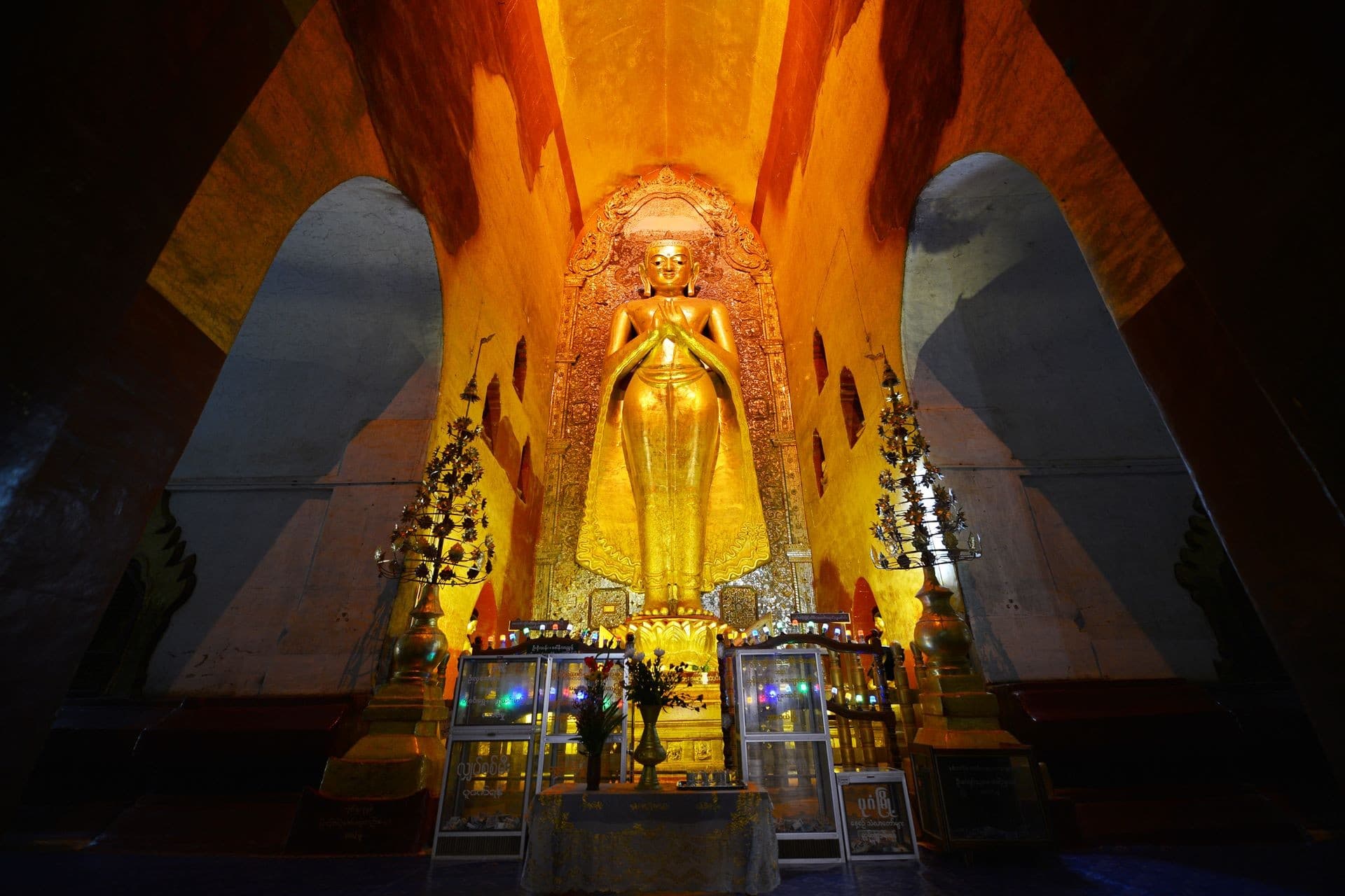 Desayuno. Visita al mercado local, de la pagoda Shwezigon, gloria de Bagan de 900 años de antigüedad, el templo Htilominlo con sus impresionantes gravados, el monasterio Nathaukkyaung de madera de teca construido a la orilla del río con sus antiguas escrituras e imágenes de buda. Almuerzo en un restaurante local. A continuación, visita del templo de Ananda, uno de los más impresionantes, del siglo XI, La pagoda Dhamayangyi y el templo Sulamani del siglo XII y los talleres de laca, especialidad de la zona. Al final del día, se disfrutará del atardecer desde alguna de las "Sunset Hills" o miradores para contemplar todo el